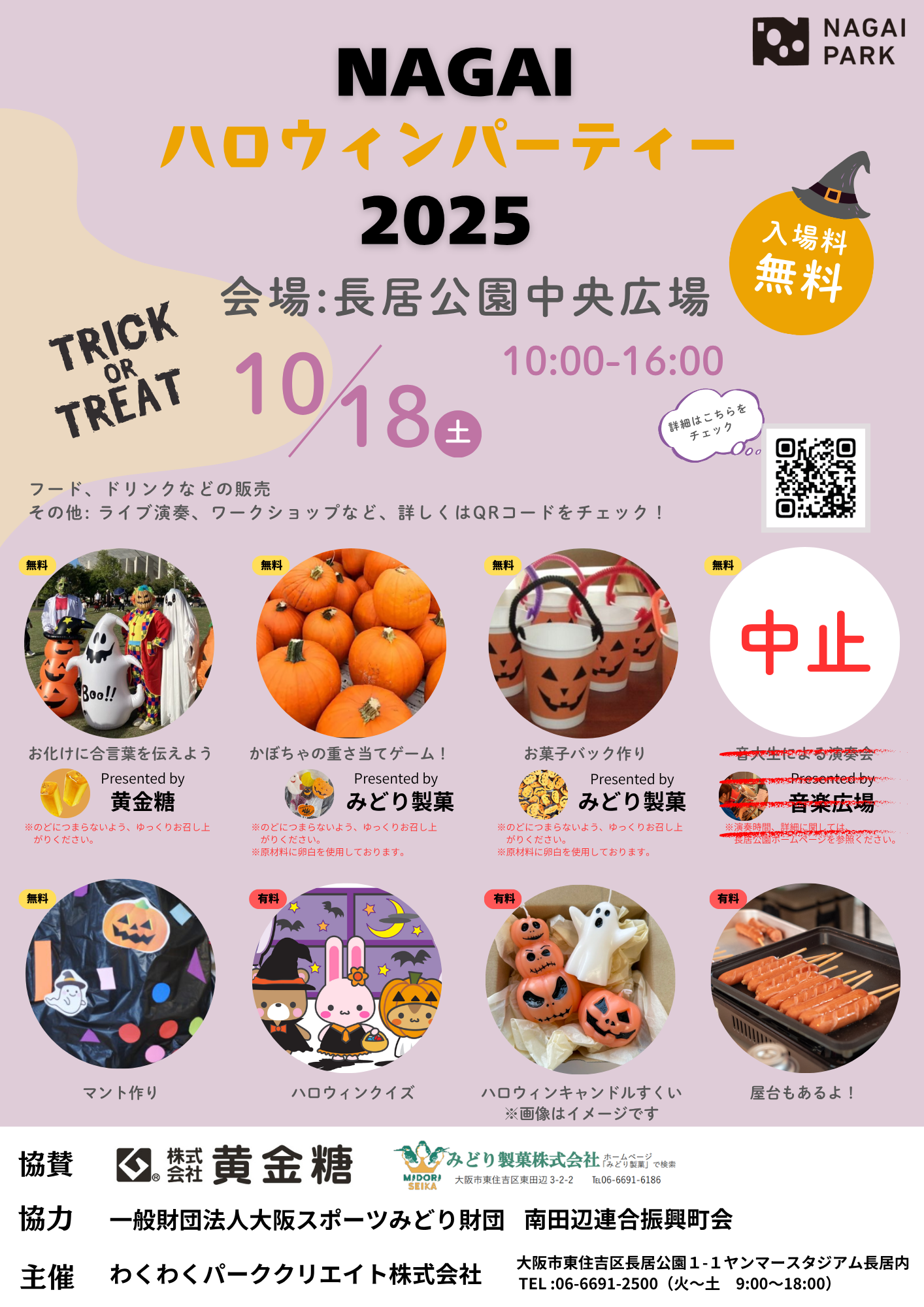2025年10月18日(土)、長居公園中央広場にて第2回ハロウィンイベント「NAGAI ハロウィンパーティー2025」を開催します!