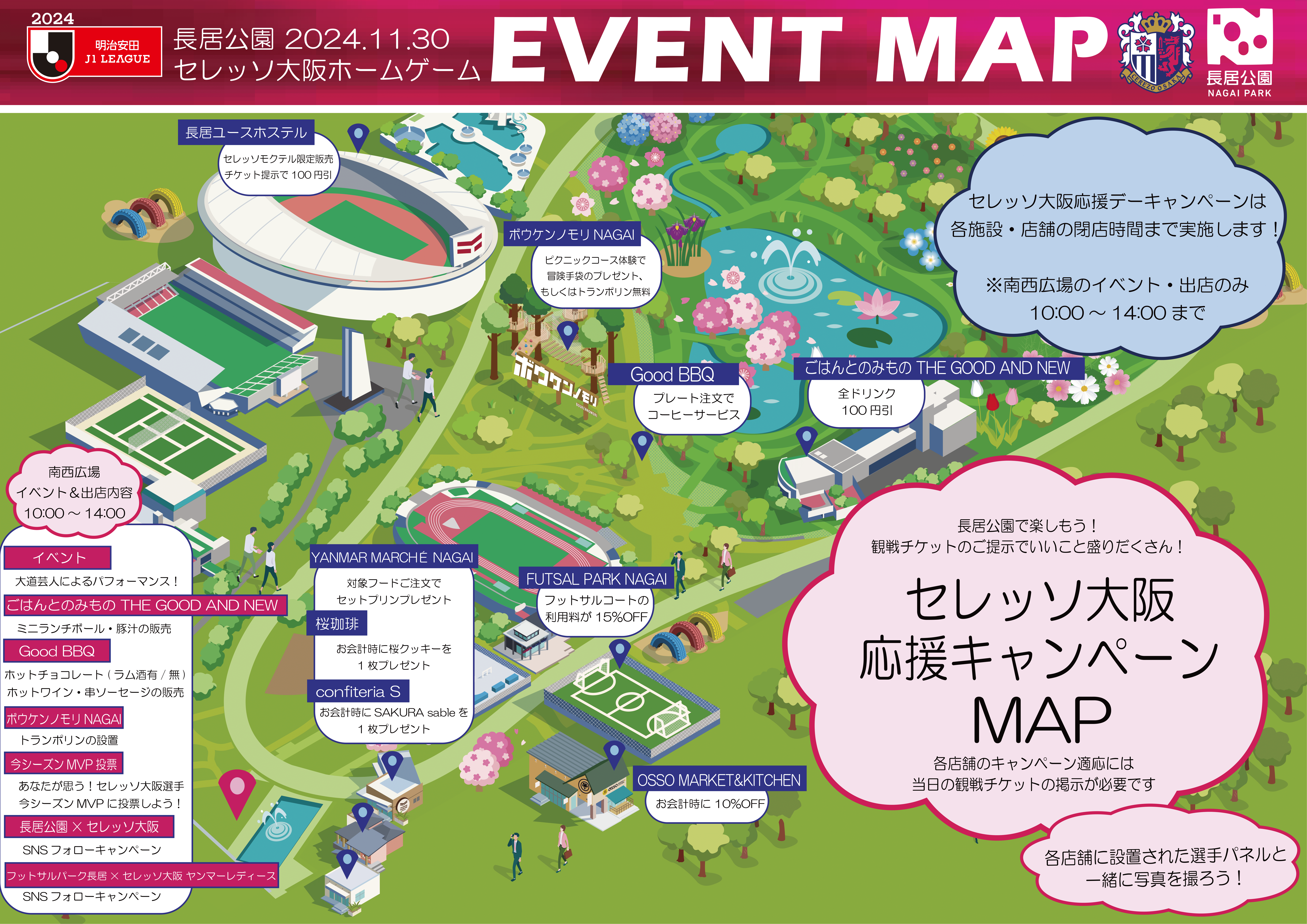 ホームゲーム最終節を盛り上げるべく、長居公園では「セレッソ大阪応援キャンペーン」を開催します♪