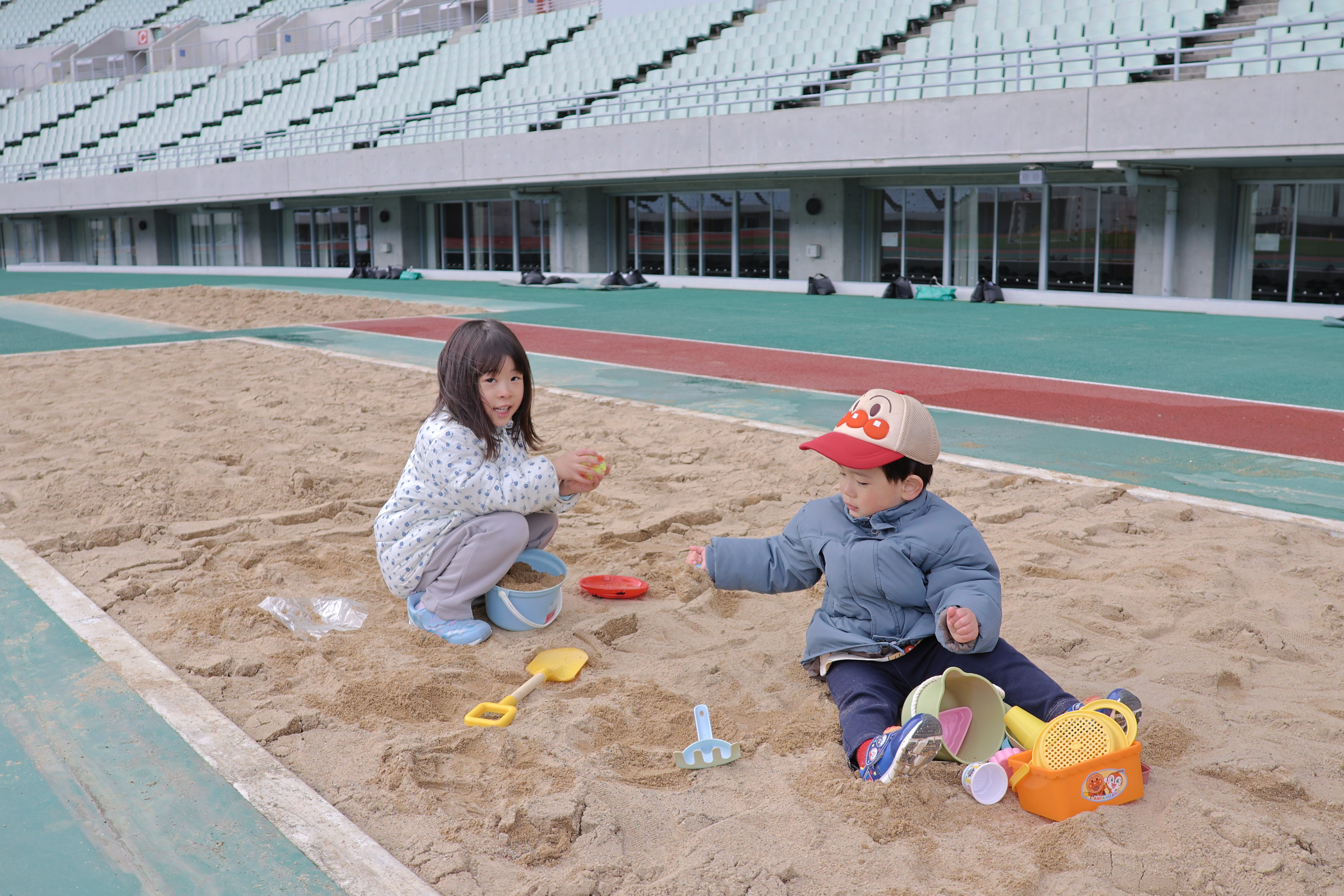 ・砂場で楽しそうに遊ぶ子どもたち